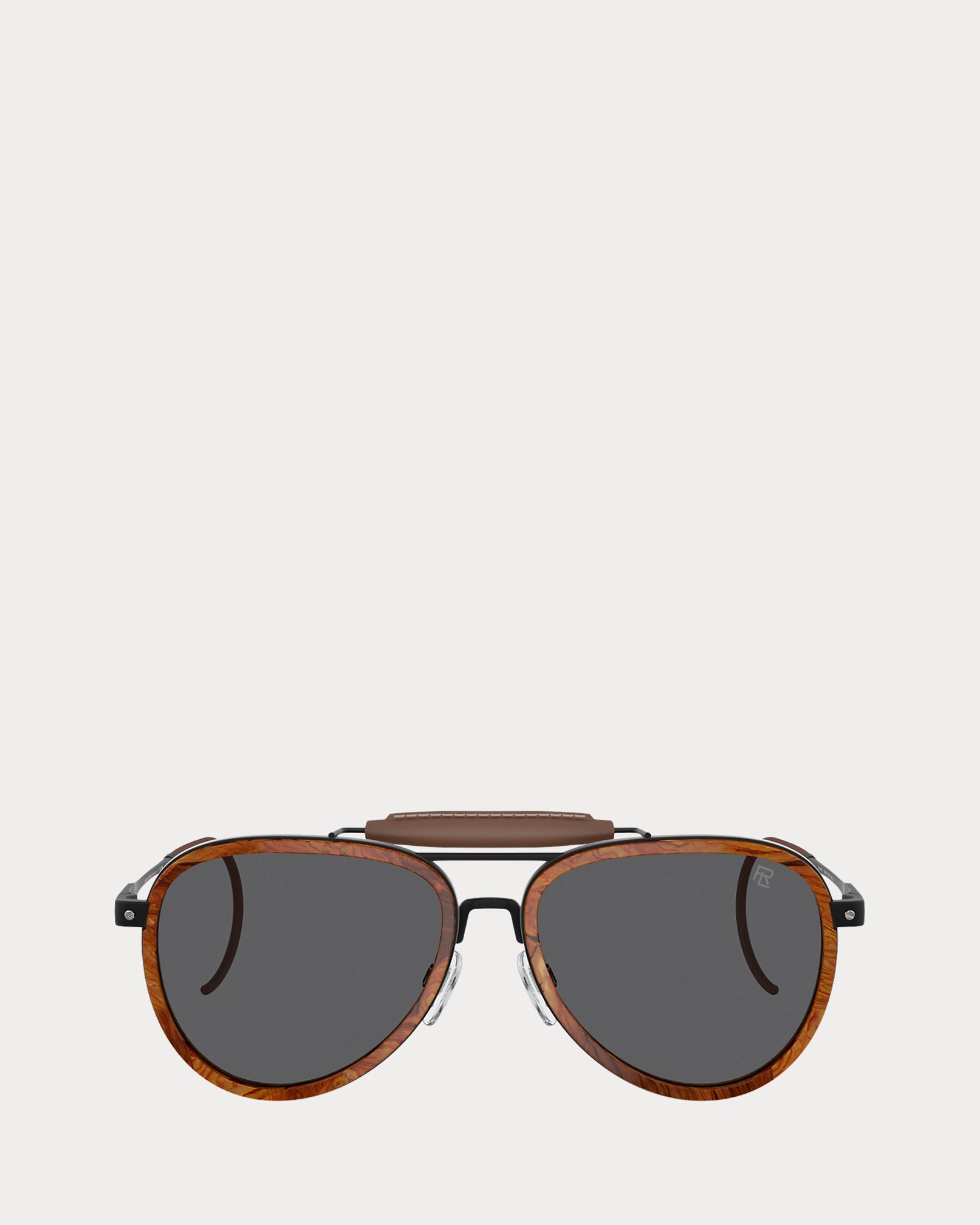 - Stacked "RL" logo etched on the left lens and on the temples.