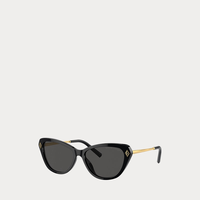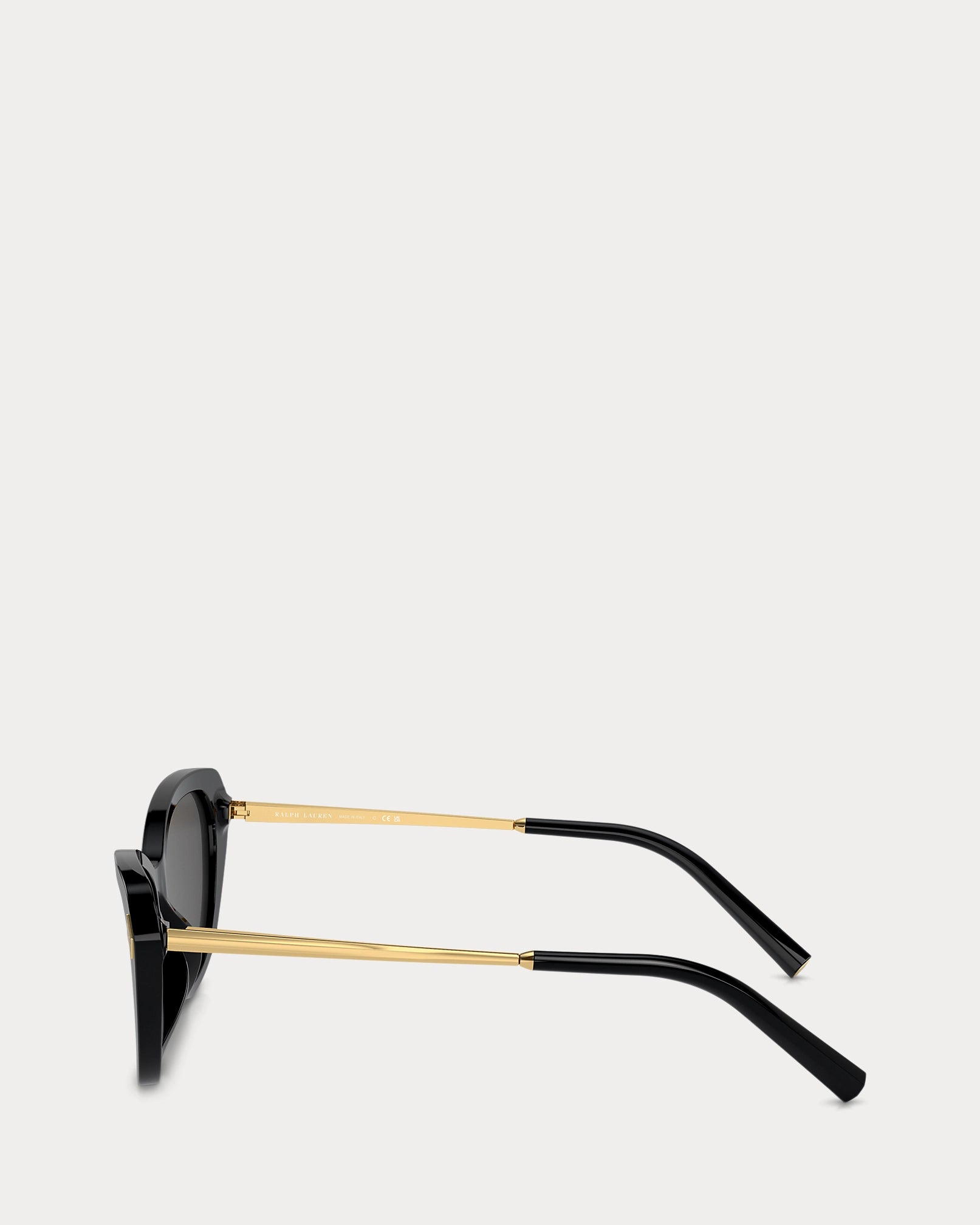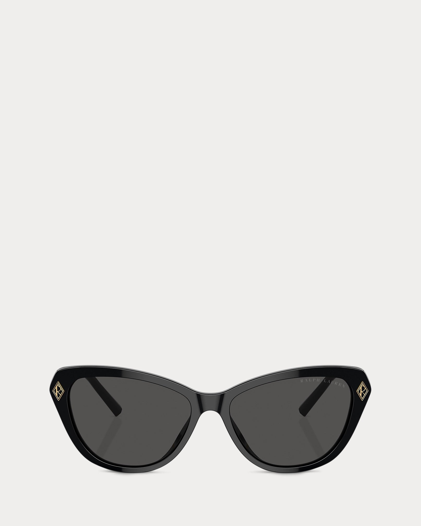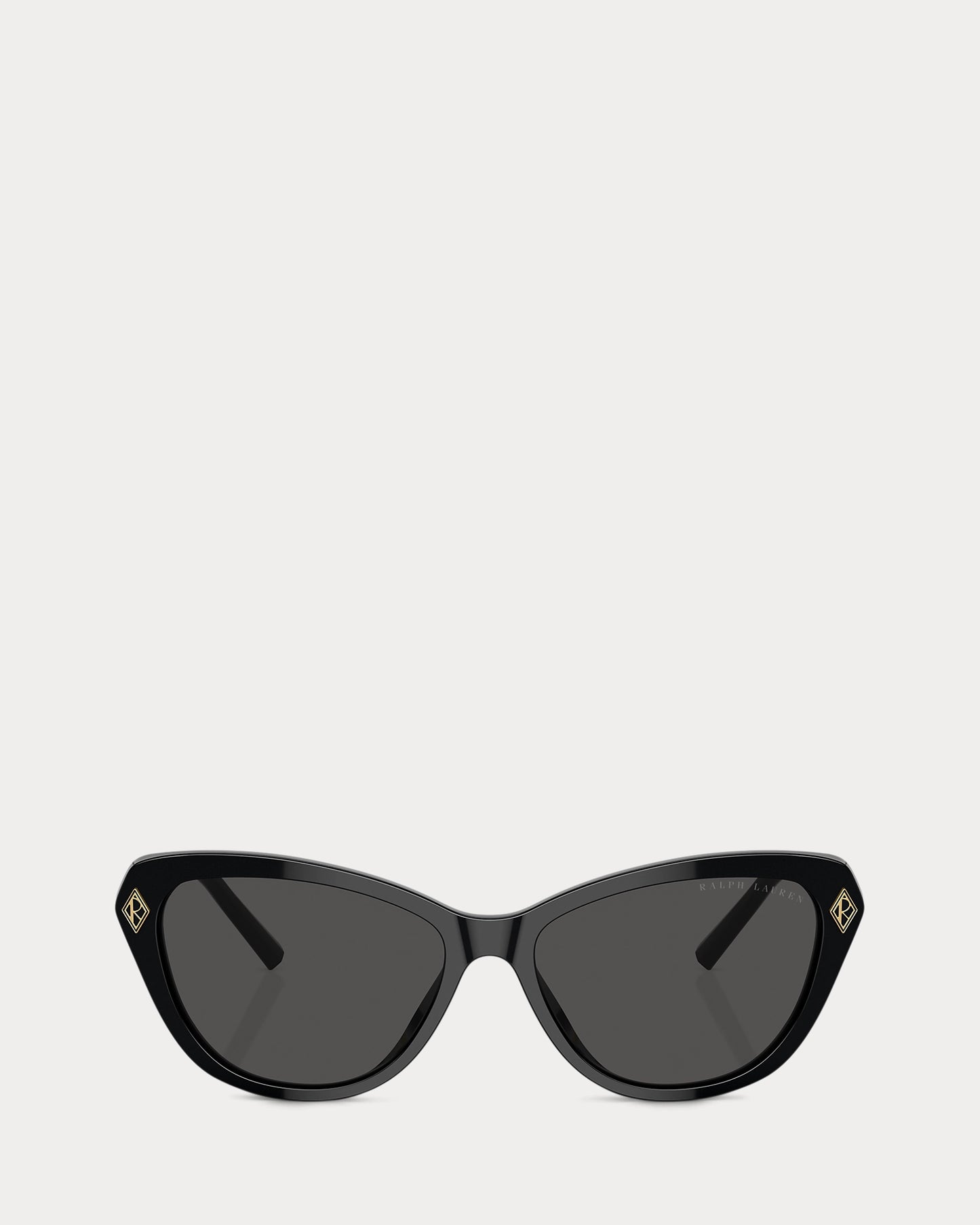 - Signature "Ralph Lauren" printed on the left lens. Art Deco "R" logo at the upper corners of the frame and at each temple tip.