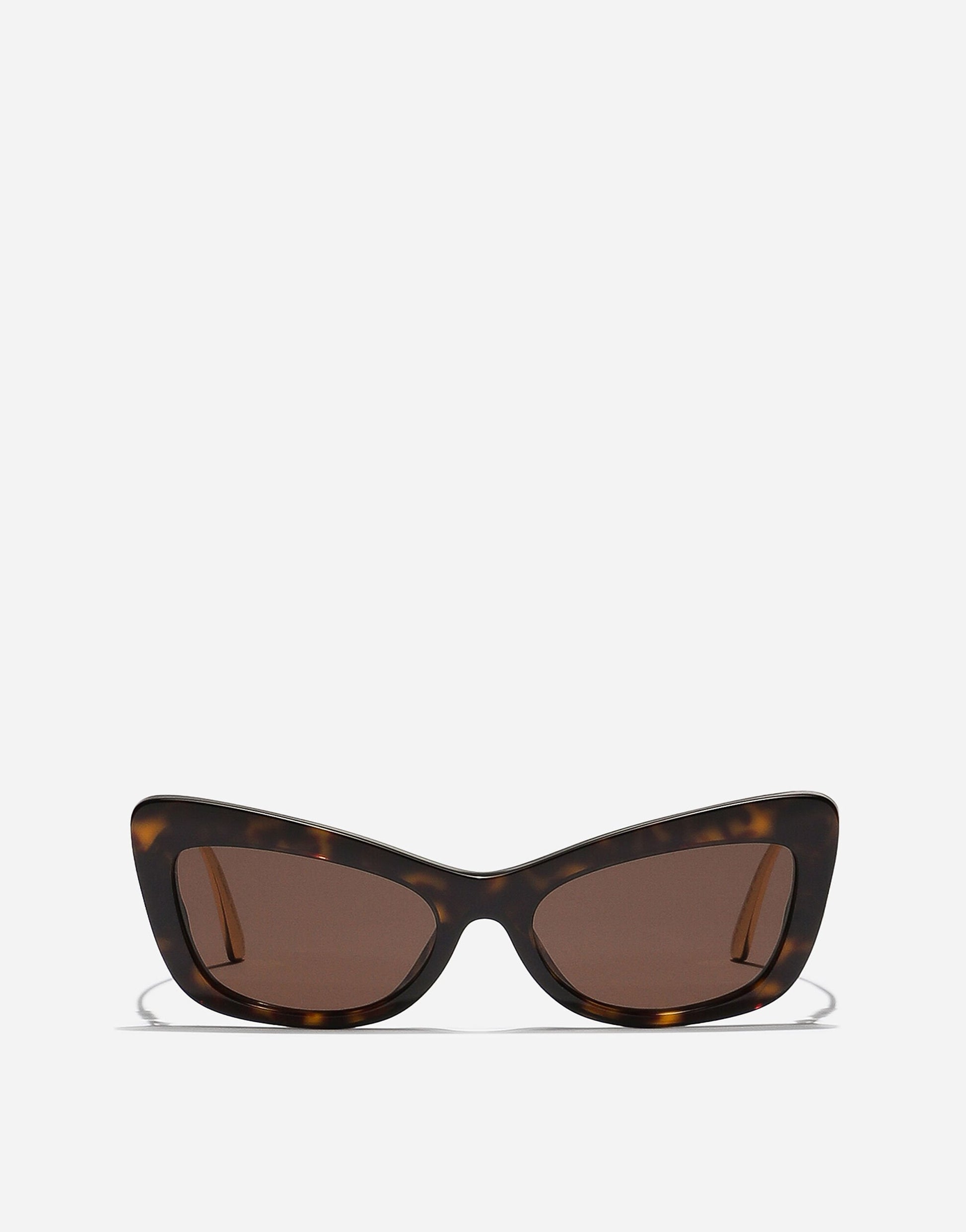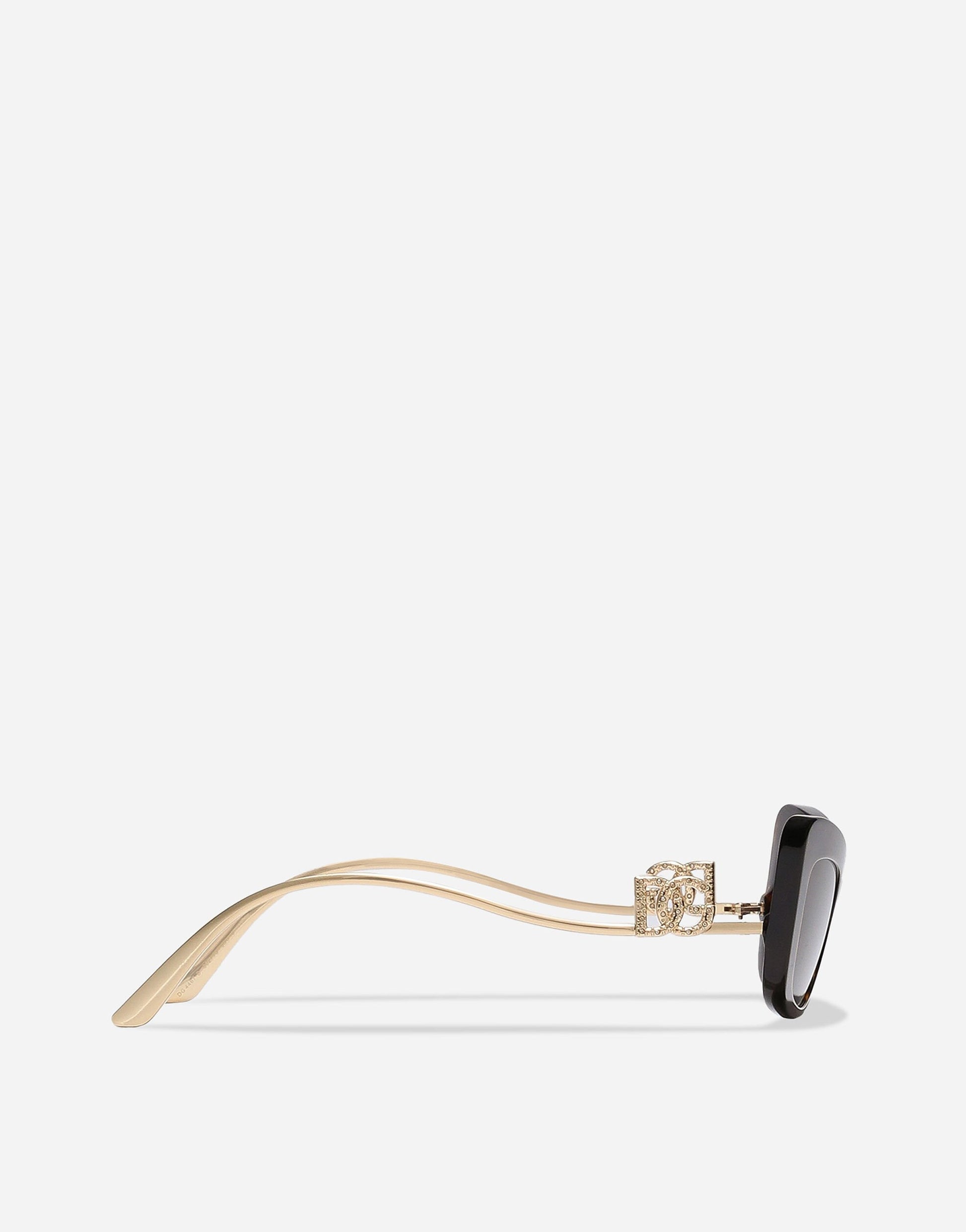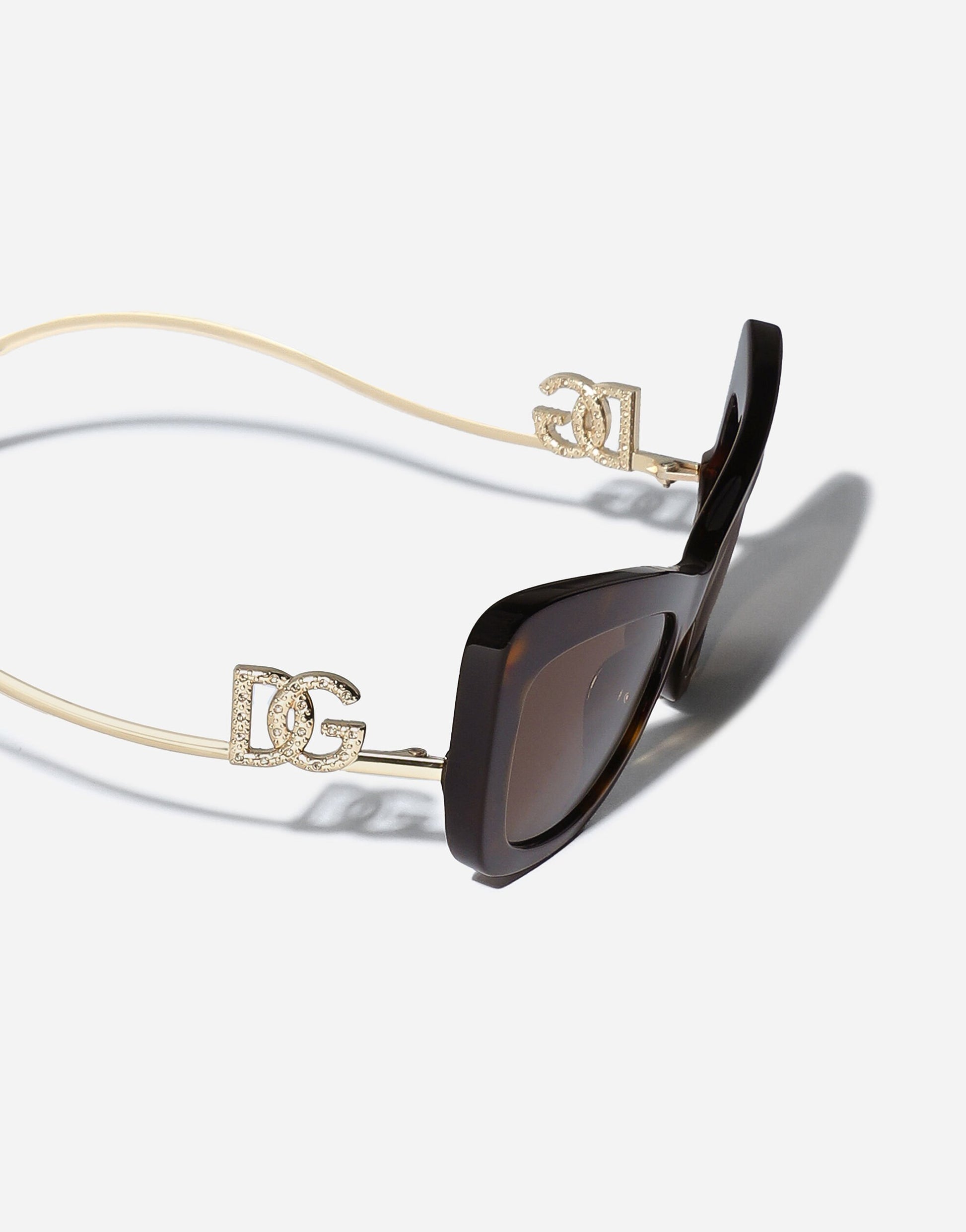 A new ultra-feminine style with a geometric cat eye shape. The metal temples are irregular and embellished with the iconic DG Crossed logo with beautiful rhinestones and luminous metal hemispheres.
