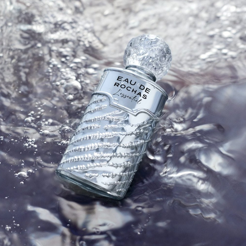 Bottle Design: Timeless icons are destined for reinterpretation, and the signature Eau de Rochas is no exception. The bottle is adorned with glistening silver, creating an effect of watery ripples on the sparkling glass. The name of the fragrance is hand-written on the bottle for a personal touch.