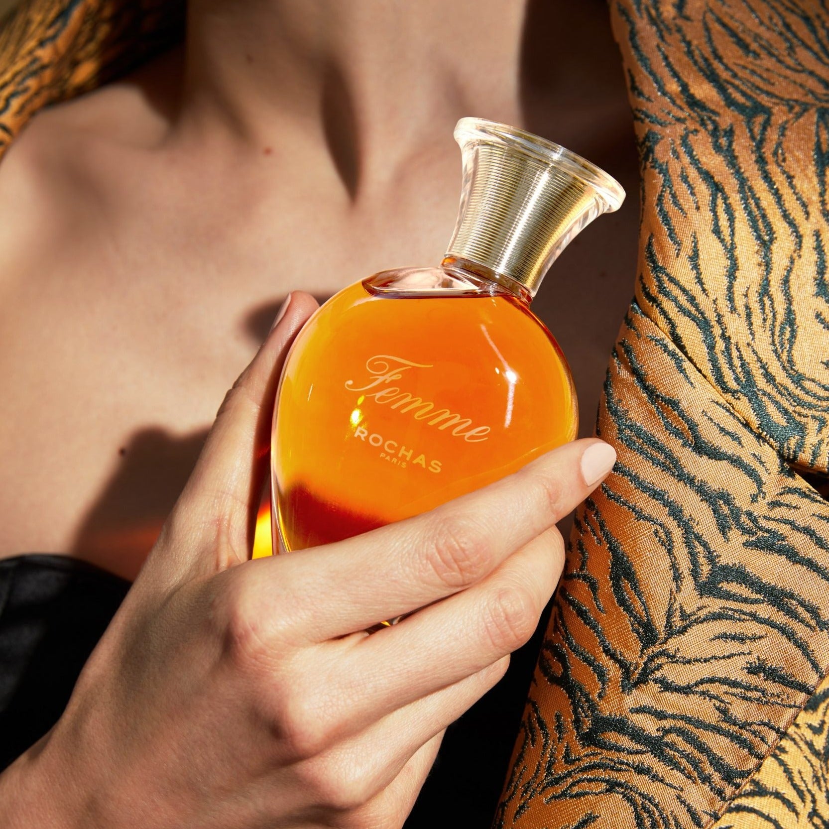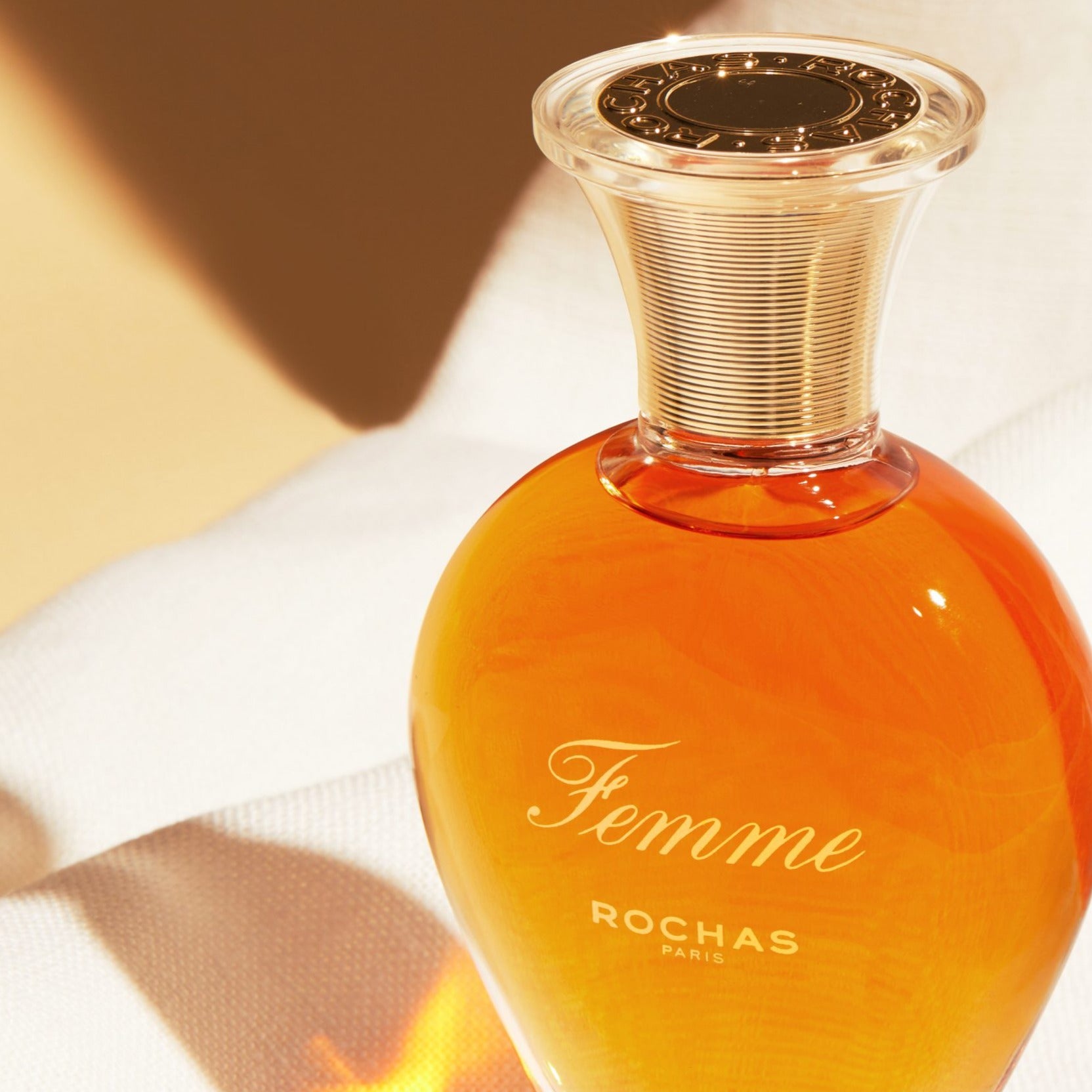 Femme by Rochas is a cult perfume created by Marcel Rochas in 1948 as a tribute to his wife Hélène, celebrating sublime femininity. This eau de toilette distills its charms in a seductively curvy bottle, embodying the quintessence of feminine seduction with its chypre-fruity-spicy composition that leaves a sensuous, sensual trail.