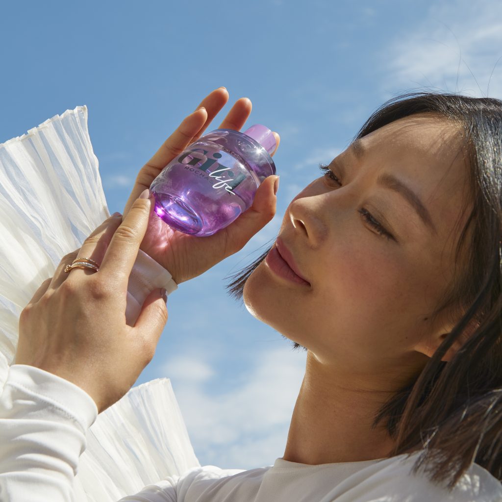 Bottle Design: The original GIRL bottle with its unmistakable gentle curves and cylindrical cap now comes dressed in a stunning shade of purple. The word “Life” runs through it, appearing as if added by hand in a burst of pure spontaneity.