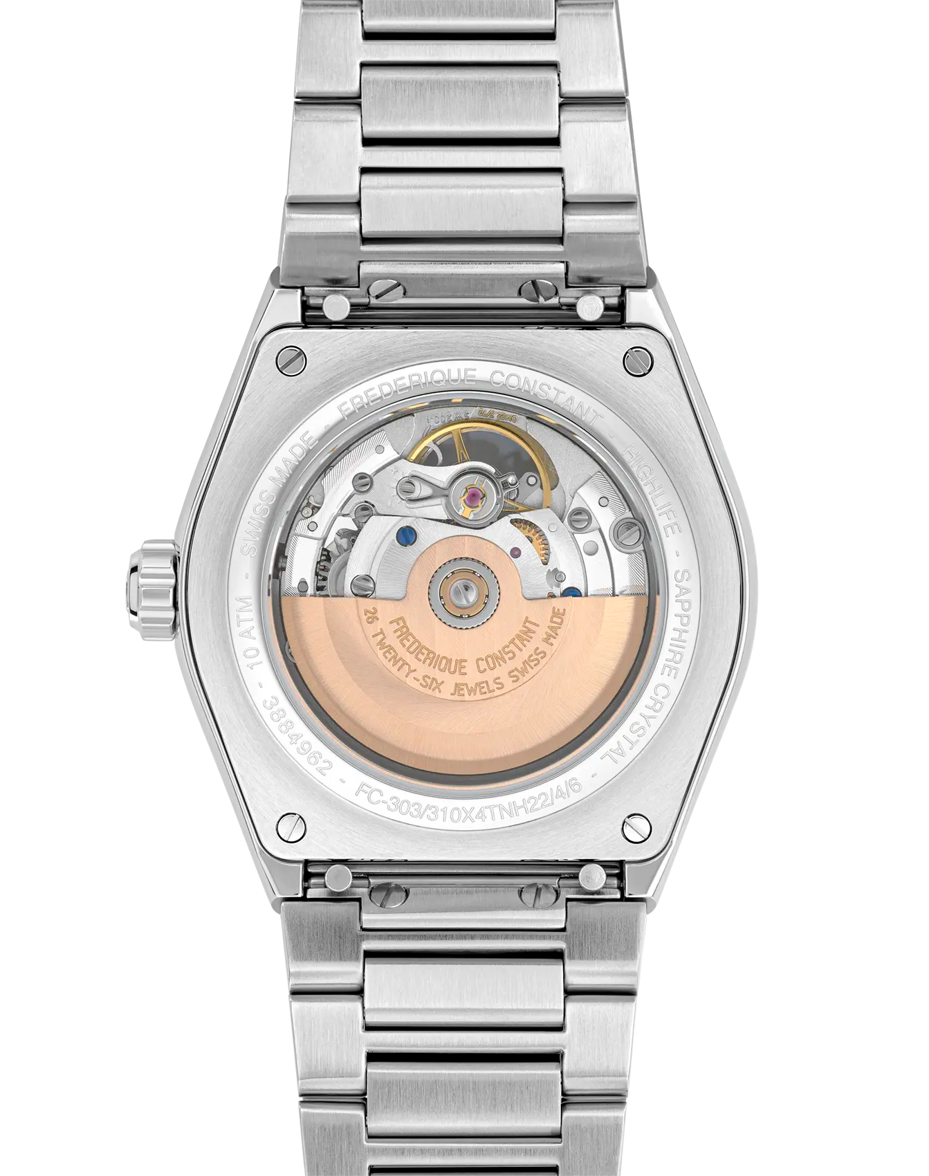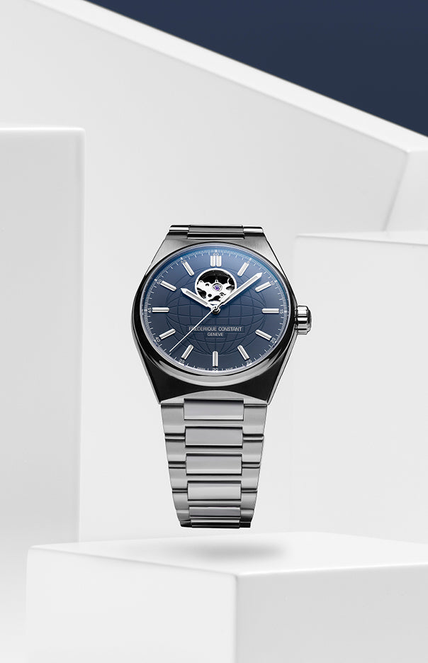 Located at the pole of the globe decoration on the dial, the famous aperture allows those who truly appreciate mechanical timepieces to watch the rotation of the balance wheel in their watch, its beating heart.