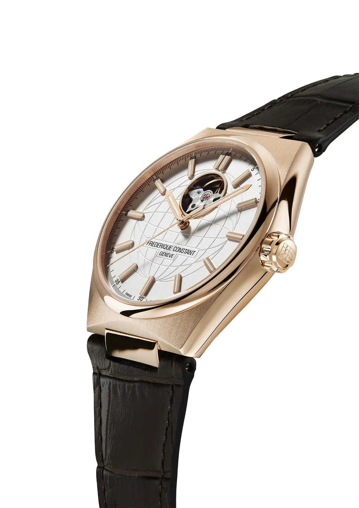 Located at the pole of the globe decoration on the dial, the famous aperture allows those who truly appreciate mechanical timepieces to watch the rotation of the balance wheel in their watch, its beating heart.