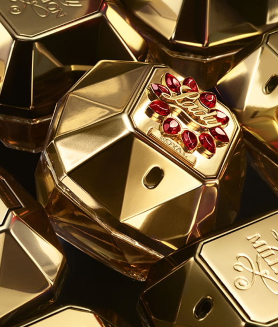 Lady Million Royal by Paco Rabanne is a fragrance that epitomizes royalty and elegance. Encased in a stunning red diamond-shaped bottle, this scent features a luxurious blend of floral and fruity notes. The fragrance opens with a fresh burst of pomegranate, progresses to a heart of white florals, and finishes with a rich base of patchouli and cashmere wood, creating an unforgettable olfactory experience.