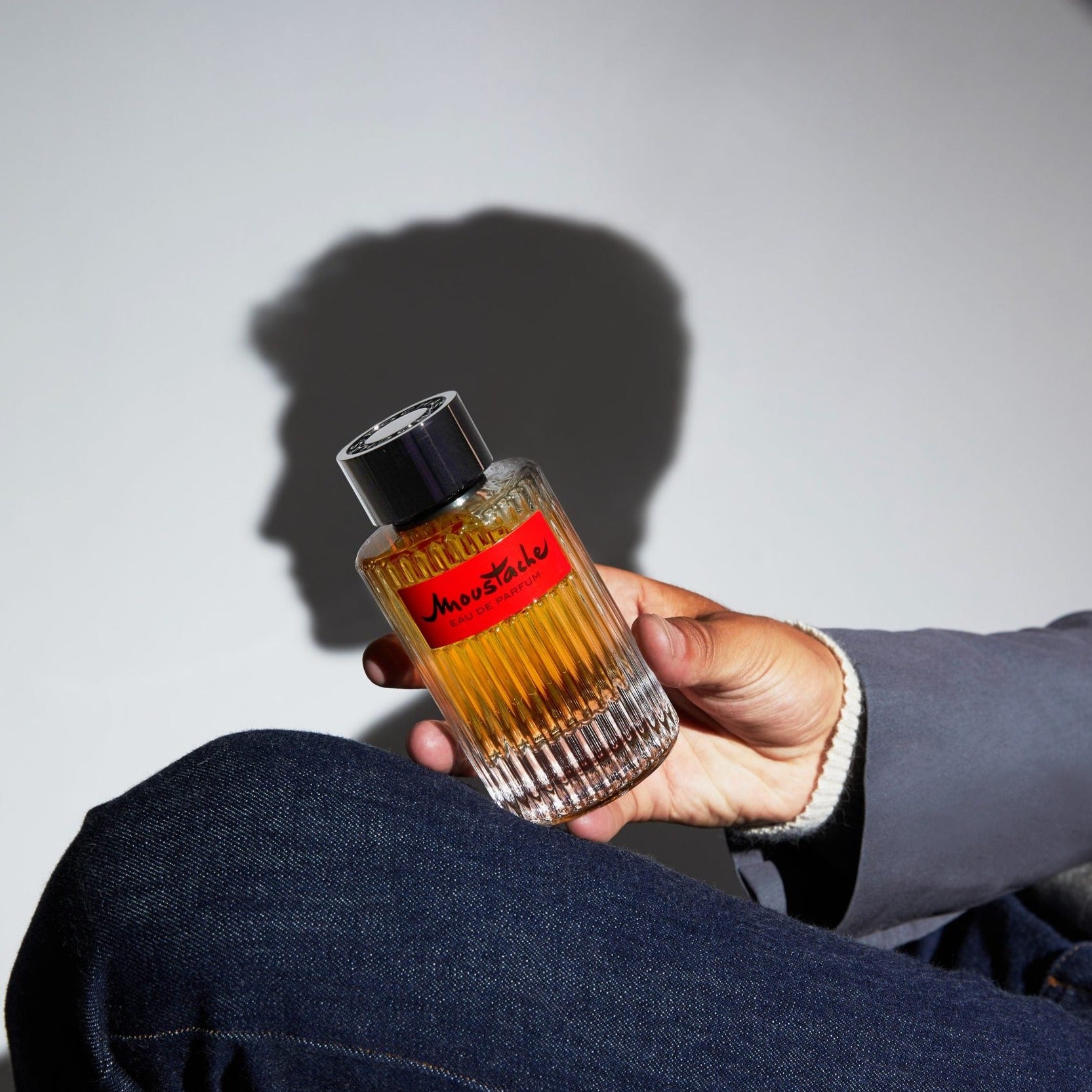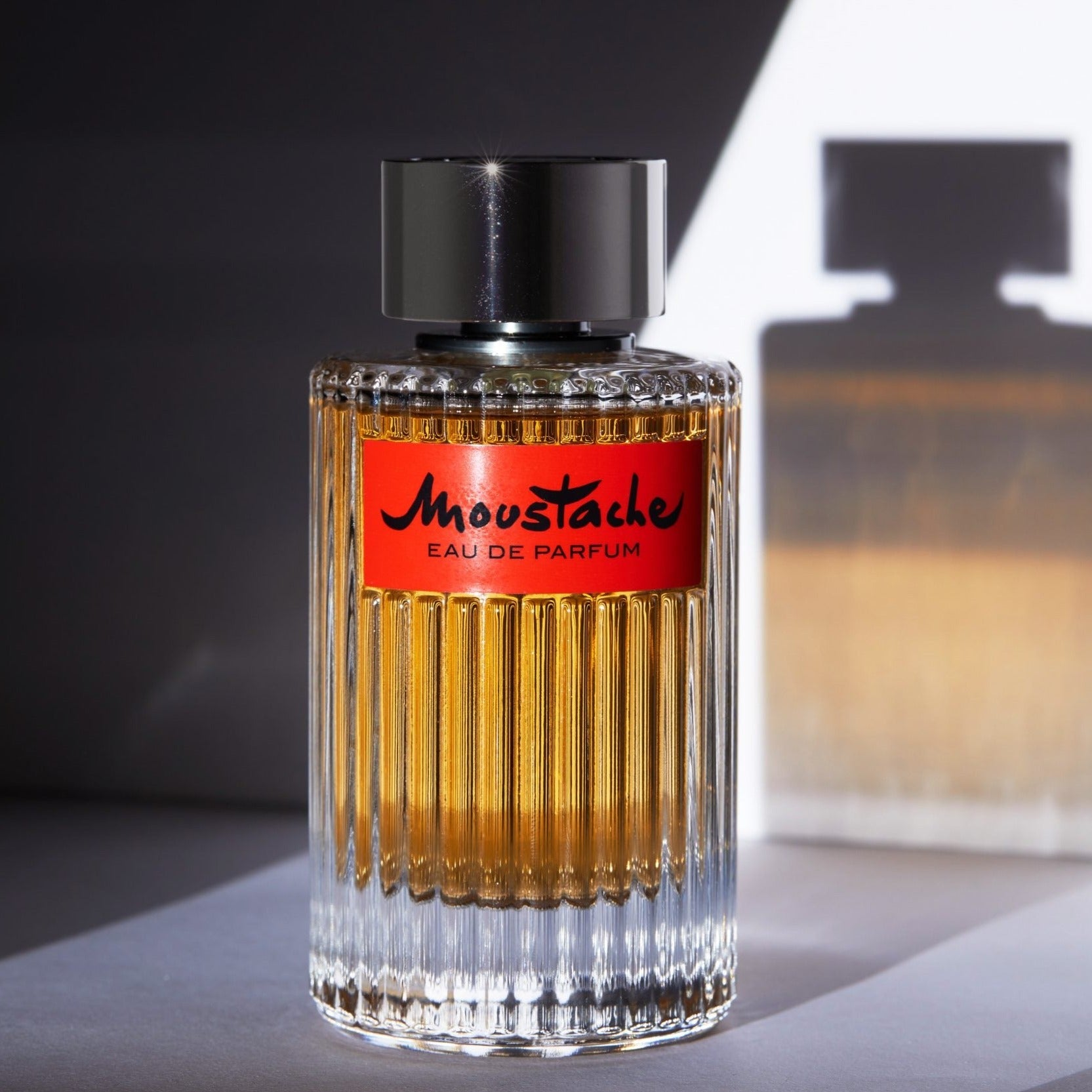 Bottle Design: The bottle is a sculptural cylinder of sturdy yet finely crafted glass. It has a wide base and a gunmetal cap that emphasize the contrasting masculinity of Moustache. The front of the bottle features its iconic red label, and the amber juice within signifies the warmth and sensuality it contains.