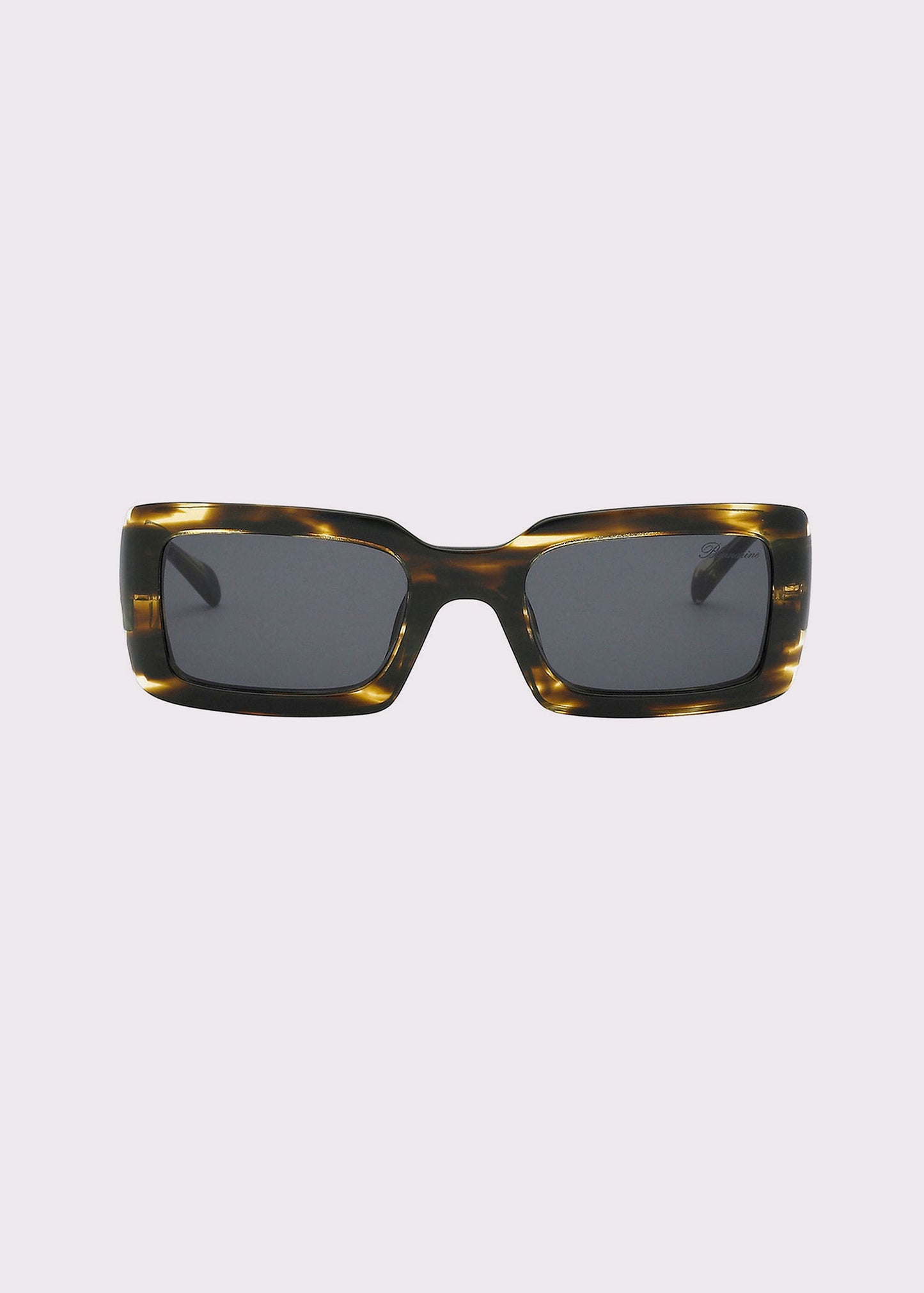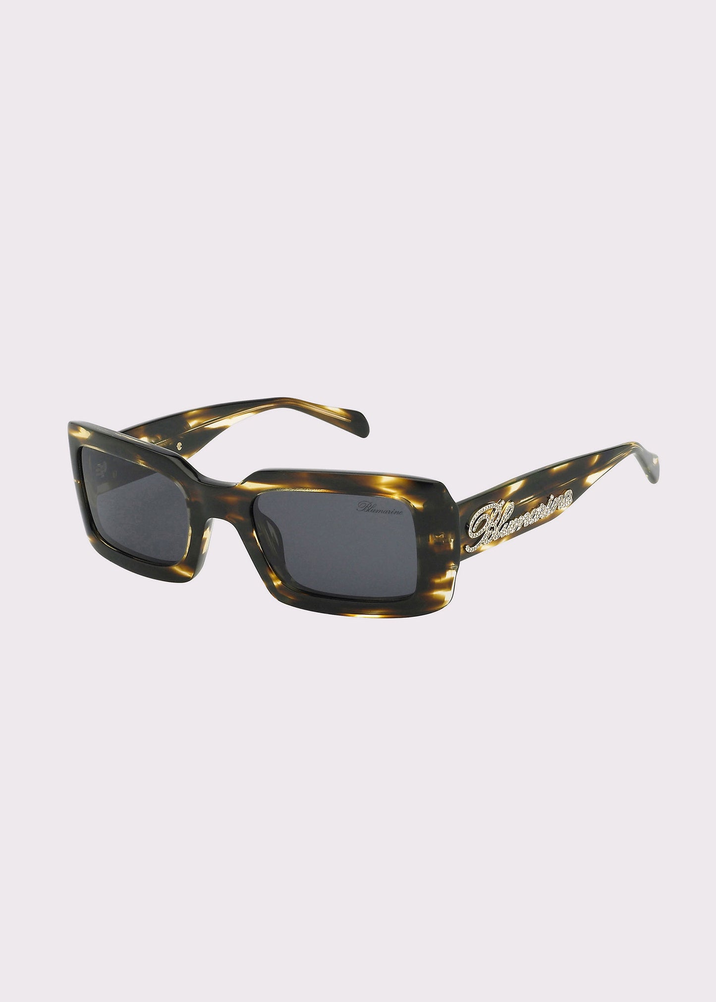ACETATE SUNGLASSES STYLE WITH LOW RECTANGULAR-SHAPED FRONT PIECE. THE BOLD TEMPLES ARE DECORATED WITH RHINESTONE BLUMARINE LOGO. COMPOSITION:100% ACETATE.