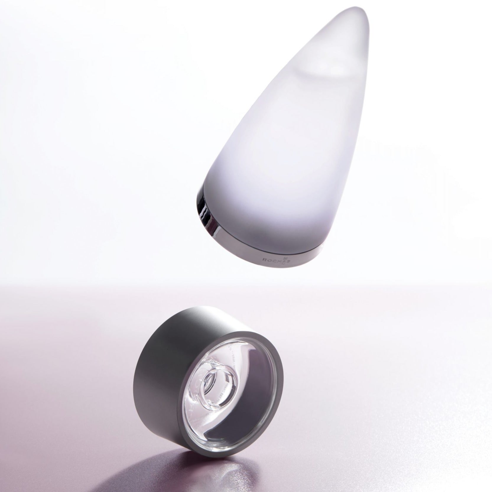 Bottle Design: Its frosted glass bottle, set atop a metal cap, is designed as a contemporary objet d’art.