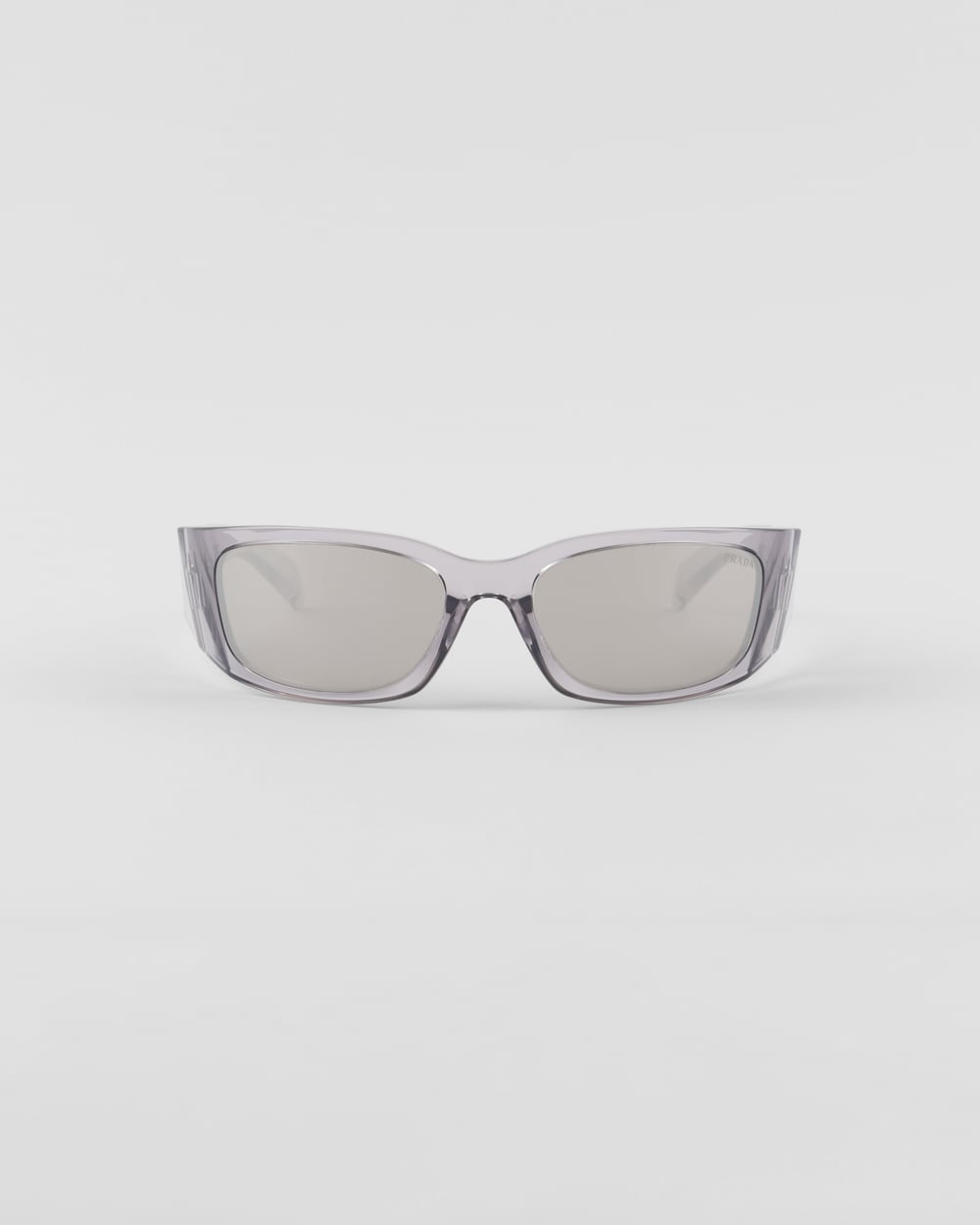 These new Prada Symbole sunglasses feature enveloping, contemporary lines. The three-dimensional crafting of the temples creates bold geometric shapes marked by an iconographic interpretation of the iconic Prada triangle logo.
