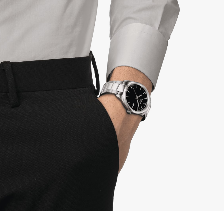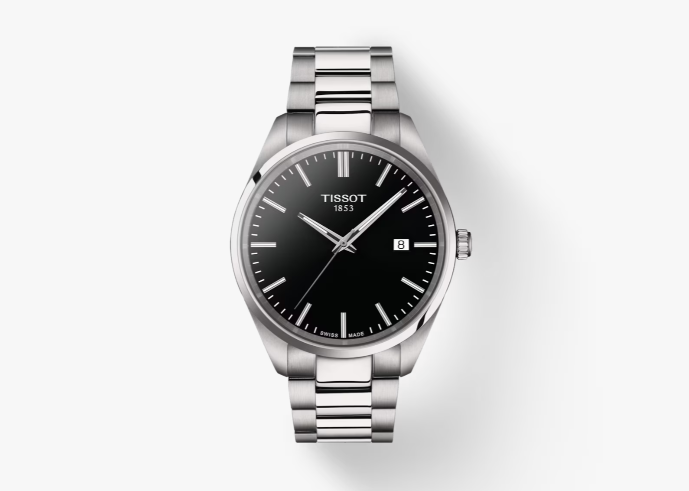 The best-selling Tissot PR 100 remains true to its name: precise (P), robust (R), and water-resistant to a pressure of 10 bar (100 m). Made from stainless steel, this new design offers a large dial thanks to the narrow bezel, for an elegant and minimalist look. The SuperLuminova®-coated hands enable precise reading even in the dark. This Tissot PR 100 Quartz model features a 40mm stainless steel case, a deep black dial and a classic stainless steel bracelet for a touch of elegance that will make the difference.